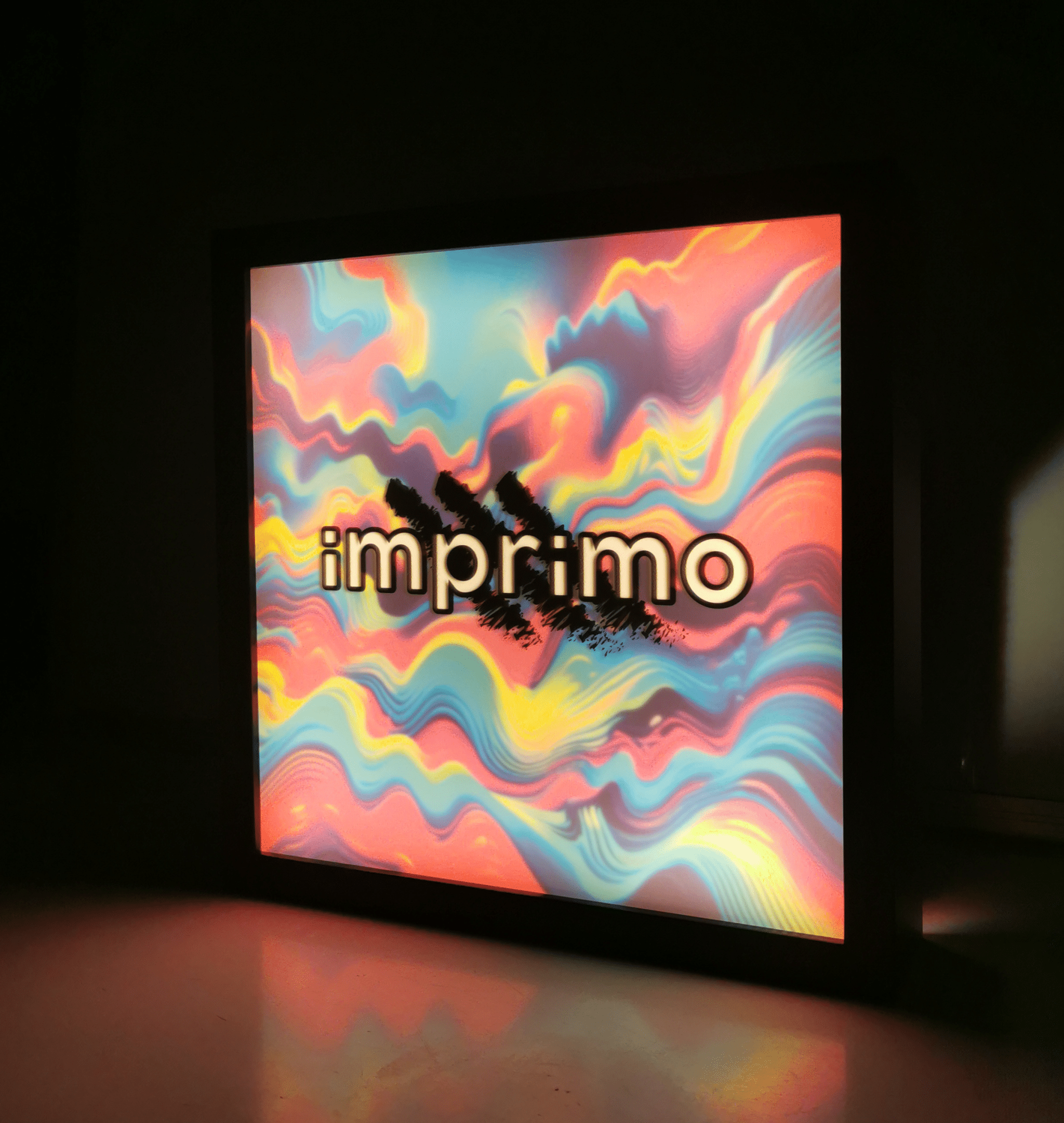 Etulevyyn tulee 25x25cm kokoinen tuloste ja voit valita toisen tulosteen levyn sisäpuolelle joka ilmestyy näkyviin vasta kun valot laitetaan päälle. Suosittelemme etupuolen kuvan olevan yksinkertainen, jotta sisäpuolen kuva tulee parhaiten esiin valojen syttyessä.